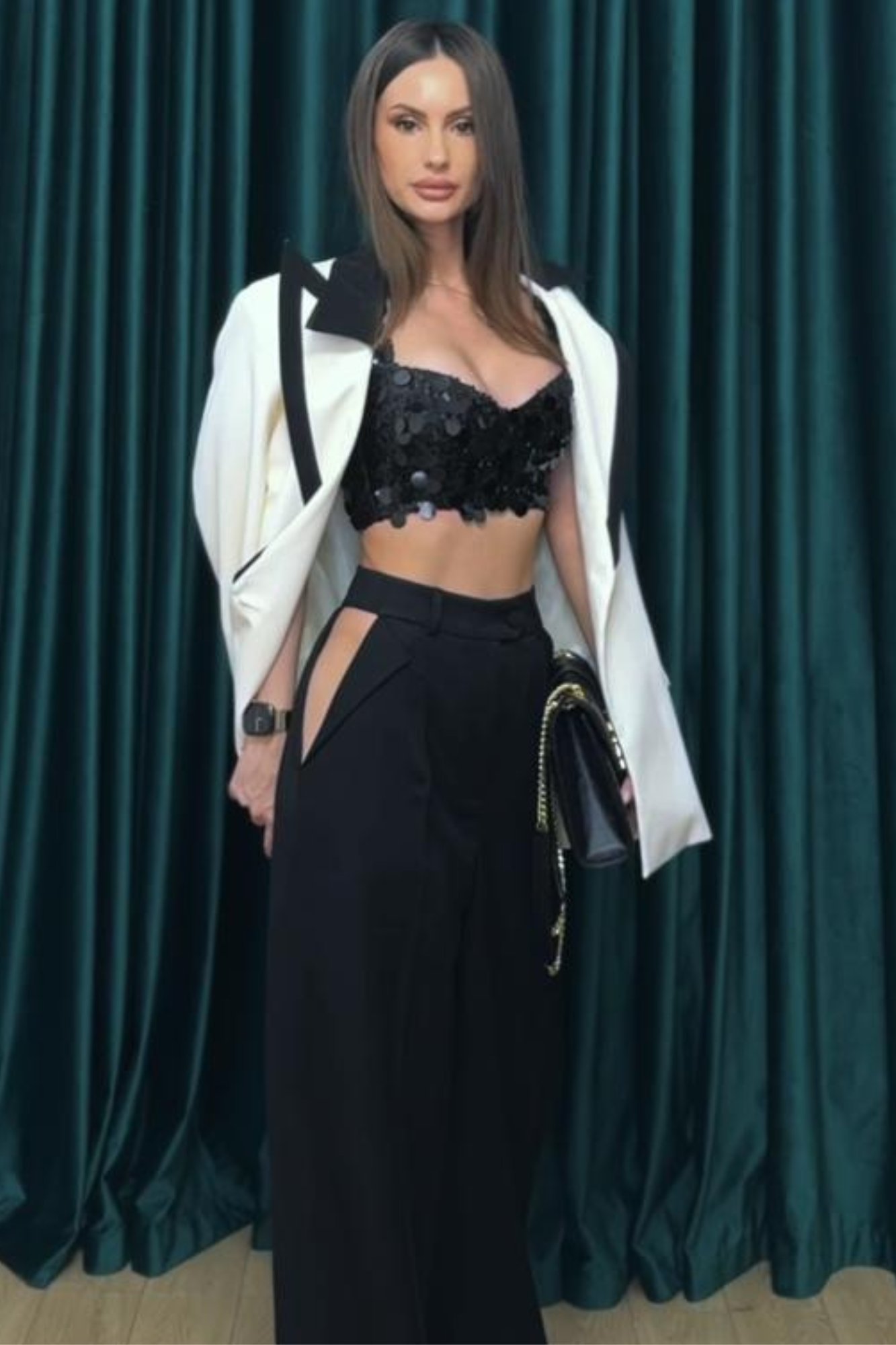 Modelul poartă mărimea 36. Dimensiunile sale sunt 84-68-94 cm, înălțimea 1,73 m și greutatea 53 kg.
