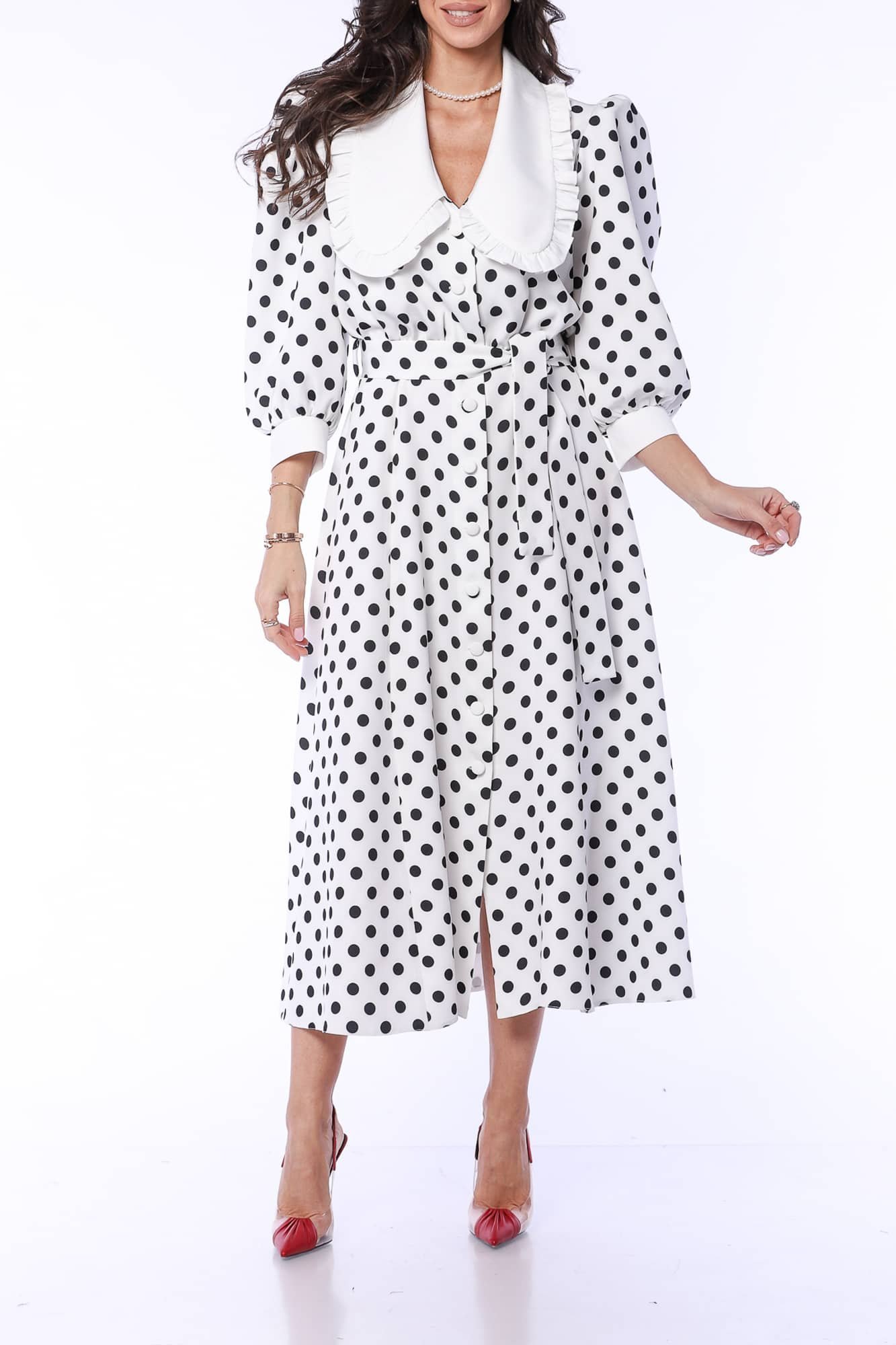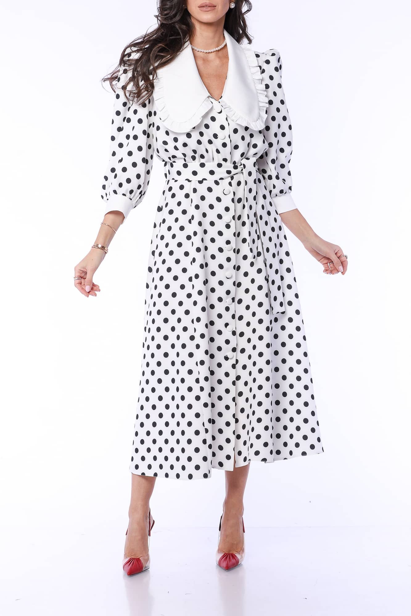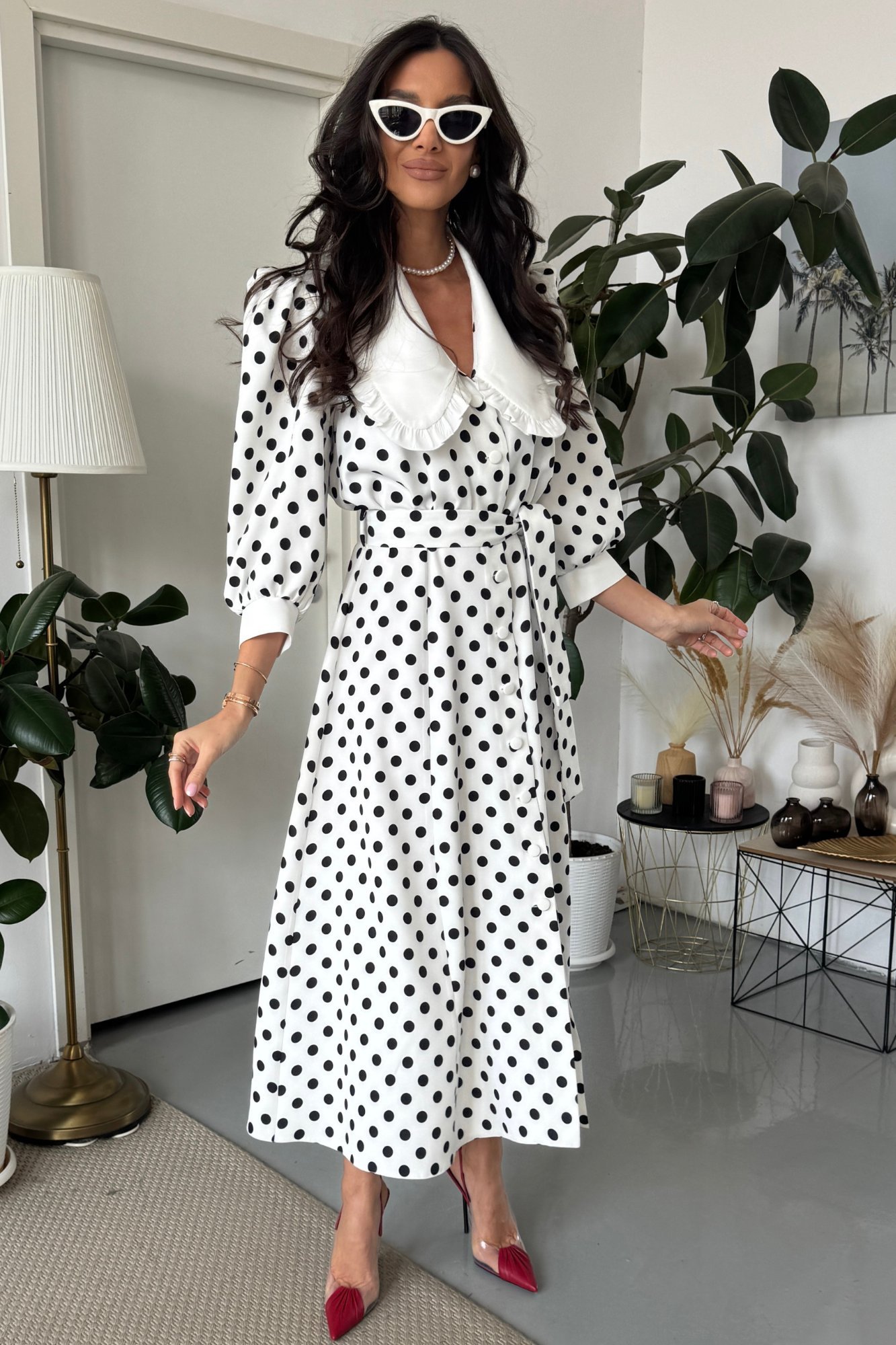 Modelul poartă mărimea 36. Dimensiunile sale sunt 84-68-94 cm, înălțimea 1,73 m și greutatea 53 kg.
