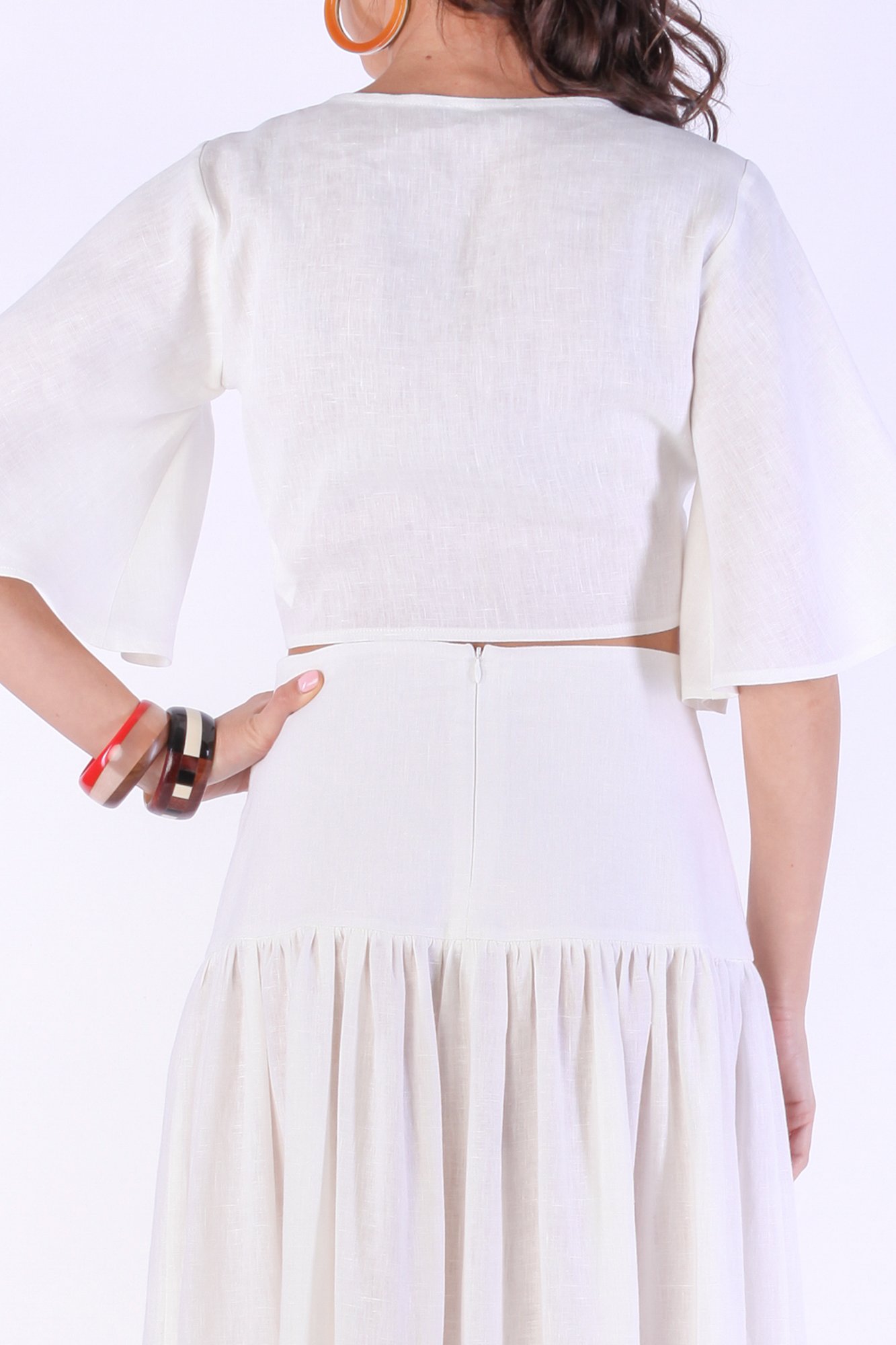 Modelul poartă mărimea 36. Dimensiunile sale sunt 84-68-94 cm, înălțimea 1,73 m și greutatea 53 kg.